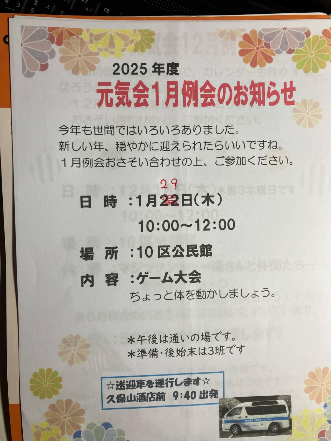 サロンげんき会1月例会29日へ‼️